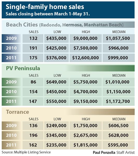 Here is a chart that appeared in last week’s Daily Breeze comparing sales data in the South Bay between March 1st and May 31st over the past three years.